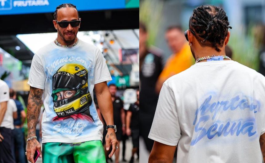 Lewis Hamilton arriba al GP de Brasil con playera en honor a Ayrton Senna