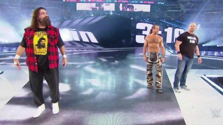 Mick Foley, Shawn Michaels y Stone Cold Steve Austin aparecieron en Wrestlemania 32 para hacerle frente a La Liga de las Naciones.