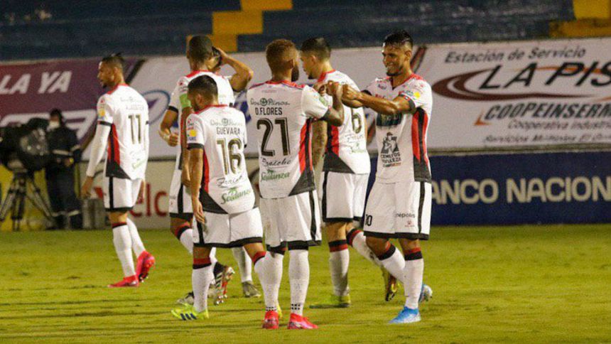 Jugadores del Alajuelense celerban un gol al Cartaginés | TWITTER @ldacr
