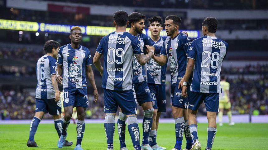 Conjunto de Pachuca celebrando gol en el Estadio Azteca | MEXSPORT