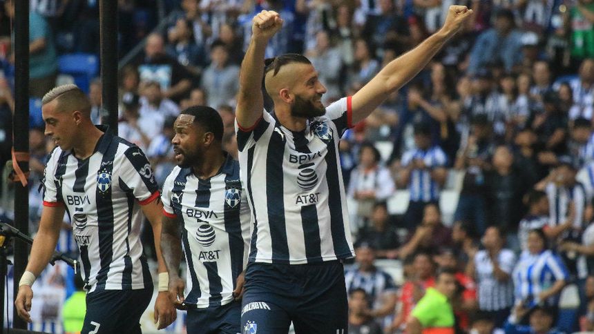 Festejo de los jugadores de Monterrey, Nicolás Sánchez, Dorlan Pabón y Rogelio Funes Mori, todos extranjeros | IMAGO7