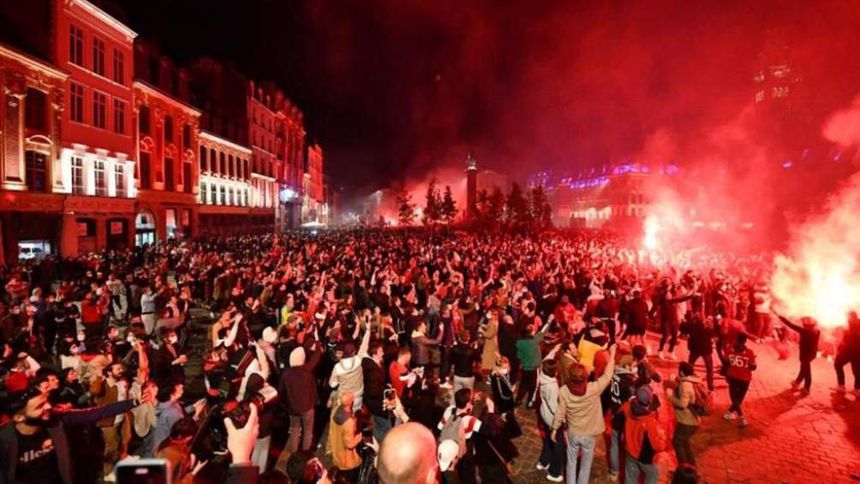 Pese al toque de queda que sigue en vigor en Francia entre las 21 horas y las 6 de la mañana, miles de personas salieron a las calles del centro de Lille cuando poco después de las 22.30 terminó el encuentro de su equipo contra el Angers (1-2) que le permitía mantener la ventaja de un punto respecto al París Saint Germain (PSG), que se tuvo que conformar con la segunda plaza pese a vencer en el último partido en el campo del Brest (0-2).