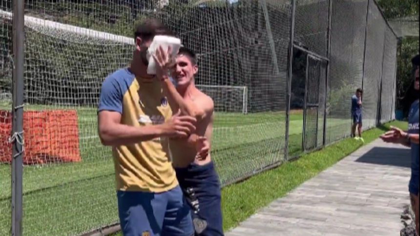 Lisandro Magallán, defensa de Pumas, cumplió 30 años este miércoles y lo celebró en las instalaciones de la cantera, donde compartió con sus compañeros, pero fue 'víctima' de Gustavo del Prete