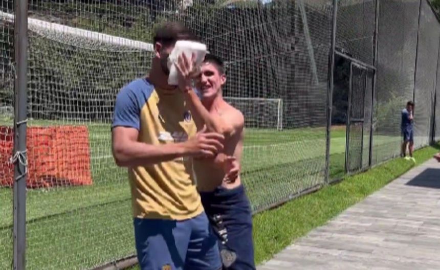 Y es que al término del entrenamiento, el 'Tuti' tenía listo el plato de pastel que embarraría en la cara de 'Licha', y así lo hizo. Luego de cantarle "¡Qué los cumplas feliz!", Del Prete se acercó a Magallán y lo llenó de pastel, hecho que el defensa central tomó con alegría.