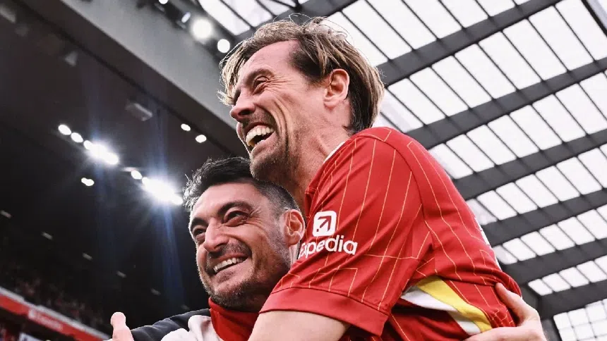 Entre los nombres más destacados estuvo el de Peter Crouch. El exjugador larguirucho, fue el encargado de anotar los dos goles para la causa del Liverpool; lo que desató una completa locura en Anfield.