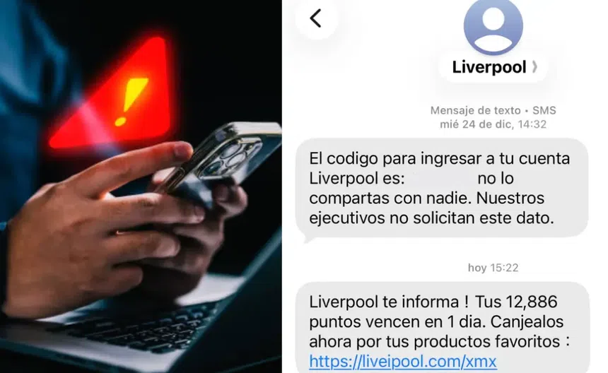 Mensajes de texto que aparentan ser enviados por Liverpool comenzaron a circular entre usuarios en México, alertando sobre supuestos puntos a punto de vencer y redirigiendo a un enlace externo. Sin embargo, el link no pertenece a los canales oficiales de la tienda departamental y forma parte de un intento de fraude digital.