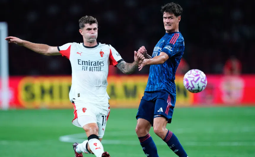 En su primer encuentro amistoso, el equipo italiano -sin Santiago Giménez- cayó 1-0 ante Arsenal, en un partido celebrado en Singapur. Bukayo Saka hizo la única anotación del compromiso al minuto 52, con un remate en los linderos el área a un centro Jakub Kiwior.