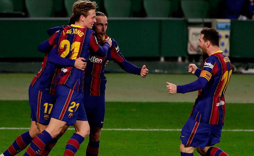 Jugadores del Barcelona, tras marcar al Betis | EFE