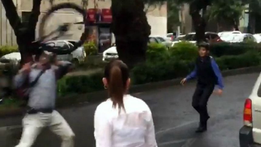 Los hechos sucedieron en el cruce de Homero y Mariano Escobedo, en Polanco, lugar donde #LordDodge intentó agredir físicamente a un ciclista que le reclamó que su automóvil estaba obstruyendo una vialidad, pero como no lo alcanzó, éste decidió lanzarle al ciclista su propia bicicleta.