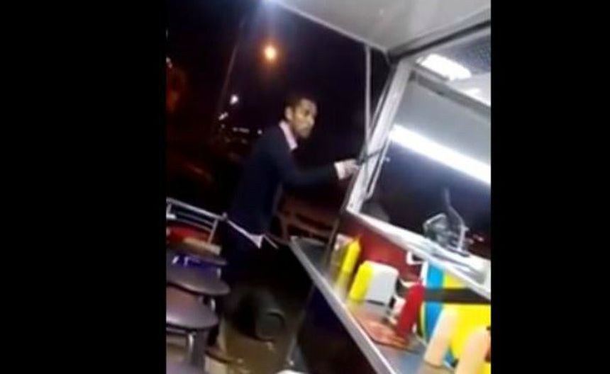 En las distintas plataformas de redes, circula un video en el que una persona comienza a decirle a un vendedor de comida que lo golpeará, al tiempo que los comensales lo observaban.