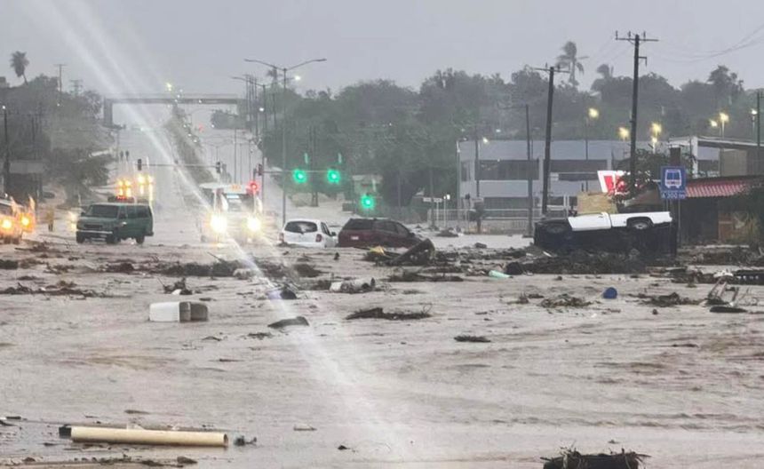 En Los Cabos, hubo un deslizamiento de tierra en el kilómetro 28.5 de la carretera transpeninsular, mientras que en La Paz se rescató a cinco personas atrapadas en autos tras otro deslave. “Se incrementaron los niveles de los arroyos San José Viejo, El Limón y Seco”, informó Protección Civil.