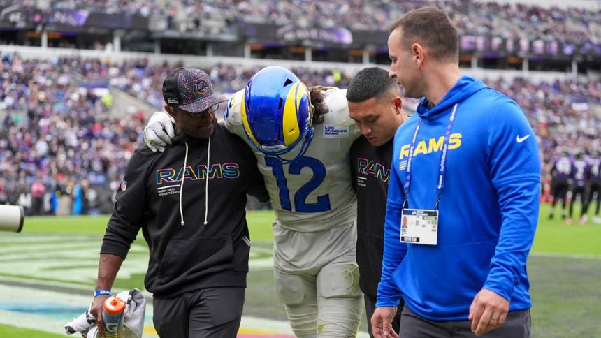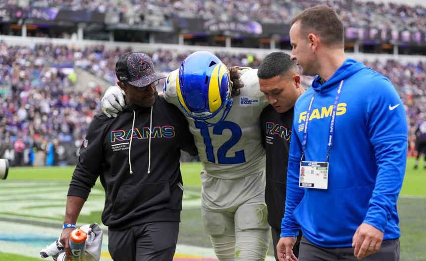 Nacua resultó herido al caer torpemente en la zona de anotación durante la victoria 17-3 sobre los Baltimore Ravens el domingo. Finalmente, se perdió el final del partido tras regresar brevemente.
