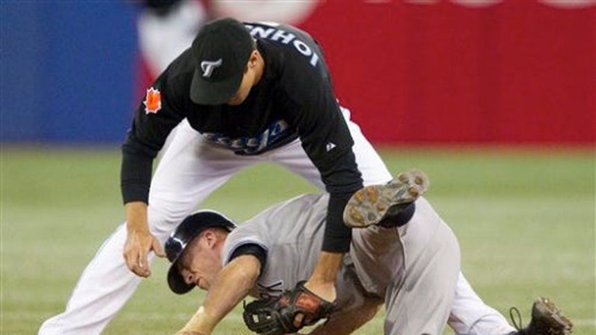 El panameño Mariano Rivera se quedó en 600 salvamentos cuando CC Sabathia no pudo conservar la ventaja y un sencillo del puertorriqueño José Molina en el noveno episodio dio a los Azulejos de Toronto la victoria por 5-4 sobre los Yanquis de Nueva York.