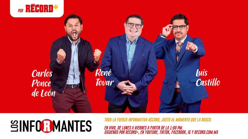 Así que no te pierdas una nueva edición de Los Informantes a través de RÉCORD+ con la mejor información, debate, polémica y exclusivas con René Tovar, Carlos Ponce y Luis Castillo en punto de la 1 de la tarde a través de nuestras redes sociales.