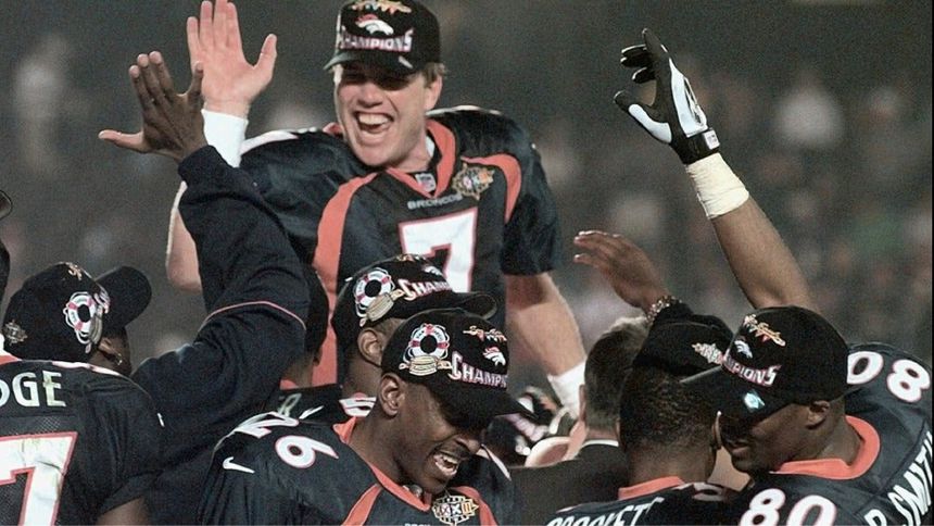 John Elway celebra triunfo ante Packers en el Super Bowl XXXII | AP