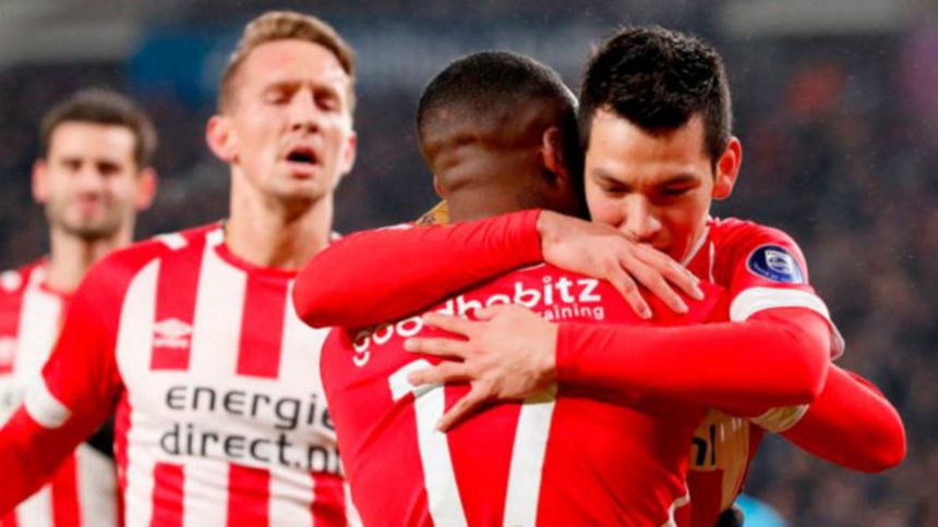 Chucky Lozano celebra una anotación ante el Groningen | TWITTER @PSV