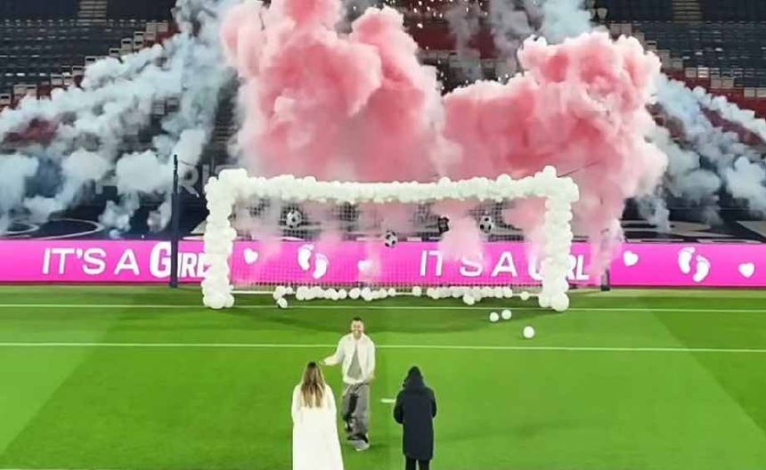 Lucas Hernández e a companheira fizeram o 'gender reveal' em pleno Parc des Princes 🤩🩷 pic.twitter.com/rRVj9S81eY
