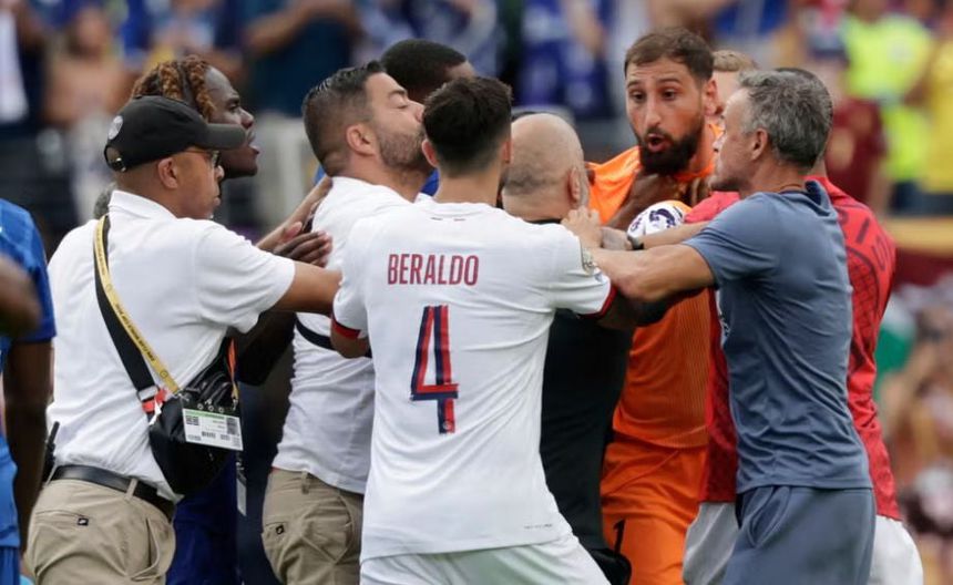 Tras el silbatazo final, Luis Enrique y sus jugadores se vieron inmiscuidos en una situación complicada, cuando comenzaron a empujarse con futbolistas y miembros del cuerpo técnico del Chelsea, donde el español alcanzó a conectar al delantero brasileño João Pedro.