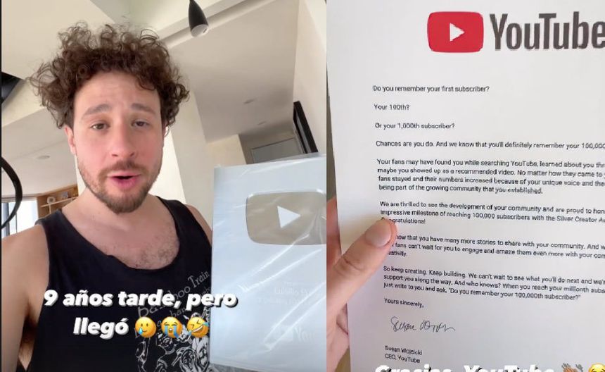 “Por alguna razón, hoy me llegó un premio de YouTube por superar los 100 mil suscriptores. Esto sucedió hace 9 años, pero aún así se aprecia mucho. Gracias @youtube por siempre estar al tanto de tus creadores, vamos ahora por el millón”, mencionó en tono de broma.