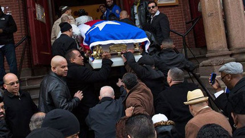 Los coches, también con banderas de Puerto Rico, pasaban de un lado a otro frente a la iglesia tocando el claxón y gritando el nombre del ex campeón, cuyos restos fueron traídos a Nueva York luego de un velatorio de dos días en Puerto Rico, donde nació.