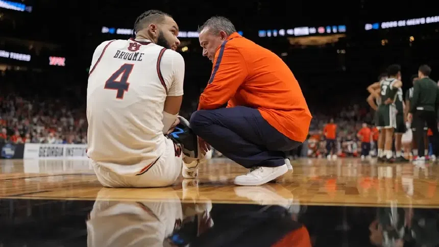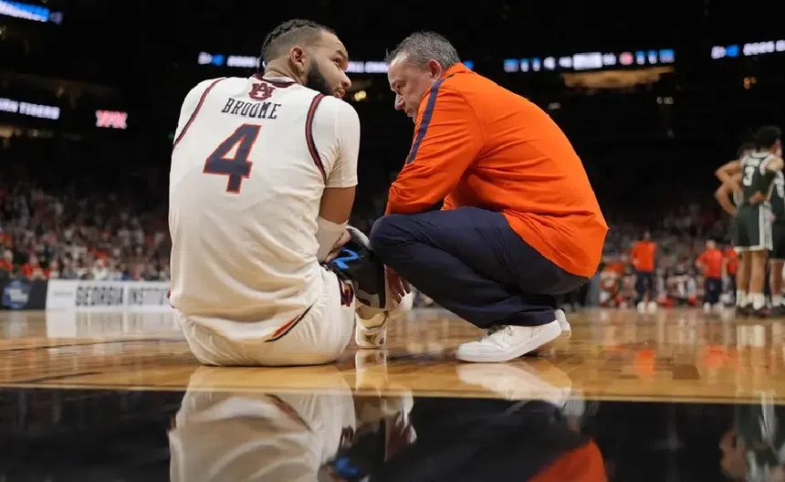 El pívot estrella de Auburn, Johni Broome, encendió las alarmas durante la segunda mitad del enfrentamiento de Elite Eight contra Michigan State al sufrir una aparente lesión en el codo derecho.