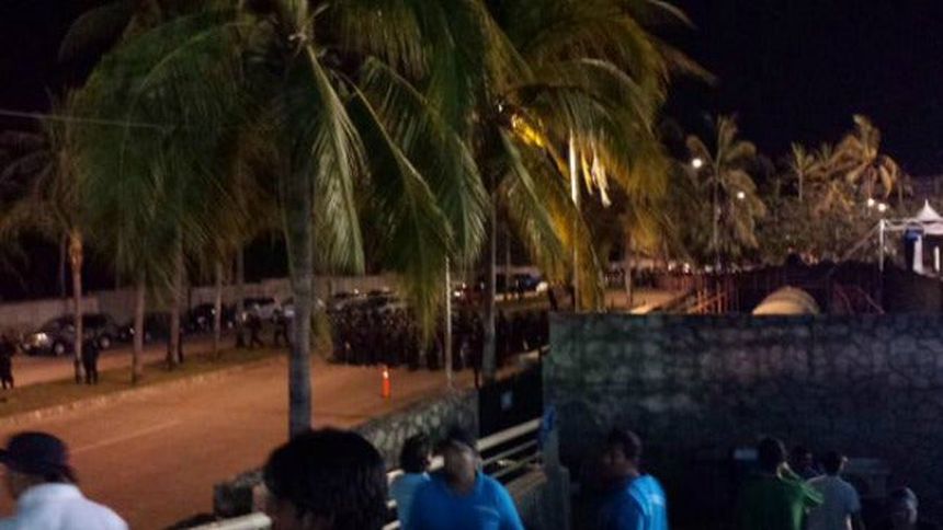 Un grupo de maestros disidentes se movilizó este martes al complejo deportivo de Acapulco donde se desarrolla el Abierto Mexicano de Tenis.