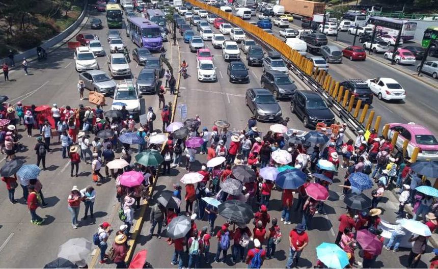 Fueron alrededor de 600 maestros los que, con todo y paraguas para protegerse del calor, tomaron esta importante vialidad de la CDMX, generando que automovilistas quedaran atrapados al no poder avanzar hacia su destino.