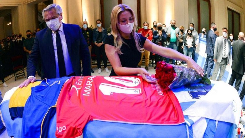Presidente de Argentina coloca una camiseta de Argentinos Jr. al féretro de Maradona | AP