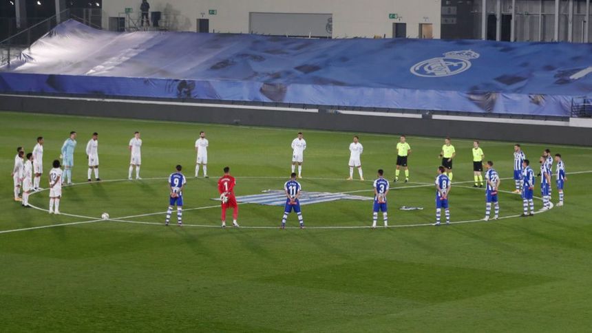 También se puso una, de menor tamaño, entre los banquillos. Los futbolistas del Real Madrid llevaron un brazalete negro en su honor y se guardó un respetuoso minuto de silencio antes de comenzar el encuentro.
