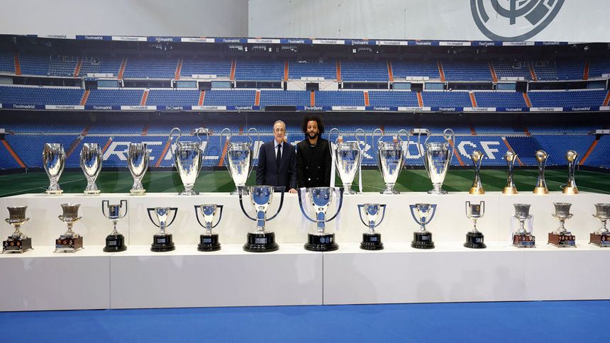 Marcelo se despidió entre lágrimas tras 16 años en el Real Madrid, con un discurso repleto de emoción junto a los 25 Títulos que le convirtieron en el jugador más laureado de la historia del club, ante su familia, el presidente Florentino Pérez, el técnico Carlo Ancelotti y compañeros como Dani Carvajal y Marco Asensio, ante los que confesó sentirse "afortunado" por haber hecho "historia".