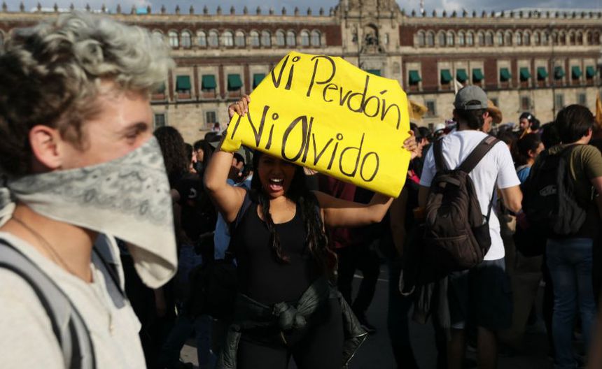 Mujer con un letrero en el Zócalo de la CDMX | AP