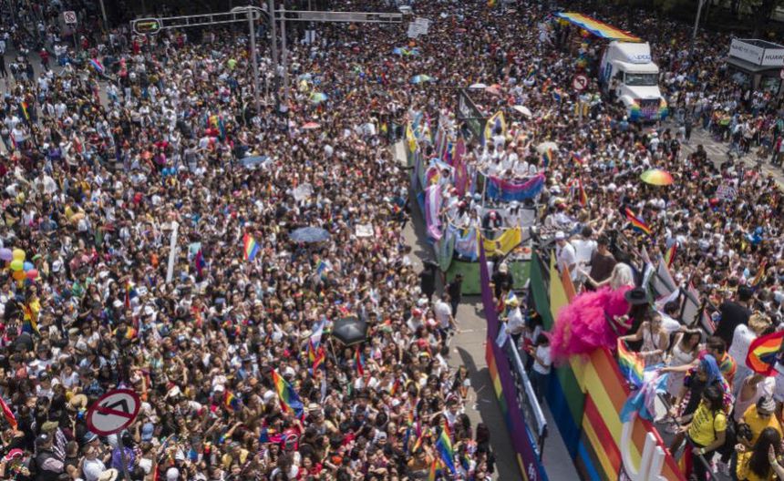 El movimiento inició en el Ángel de la Independencia, y tiene como punto de llegada el Zócalo capitalino, en donde se ofrecerá un concierto en conmemoración al Orgullo LGBT.