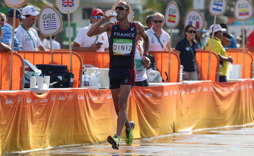 El marchista francés Yohann Diniz lideraba la marcha atlética de 50 kilómetros cuando sufrió un 'accidente' por problemas estomacales que lo aquejaron, por lo que se detuvo para limpiarse y posteriormente seguir la competencia, la cual lideraba.