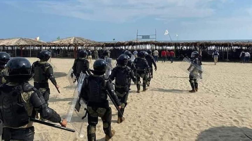 Decenas de vacacionistas llegaron a las playas, pero infantes de marina de aquel estado se encargaron de desalojarlos.