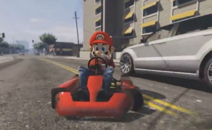 El usuario TheGuitarJammer usó un mod para ponerle a un personaje de Grand Theft Auto una máscara de Mario Bros y convertir a un automóvil en un Go-Kart para así recorrer la ciudad de Los Santos como si fuera una pista de Mario Kart.