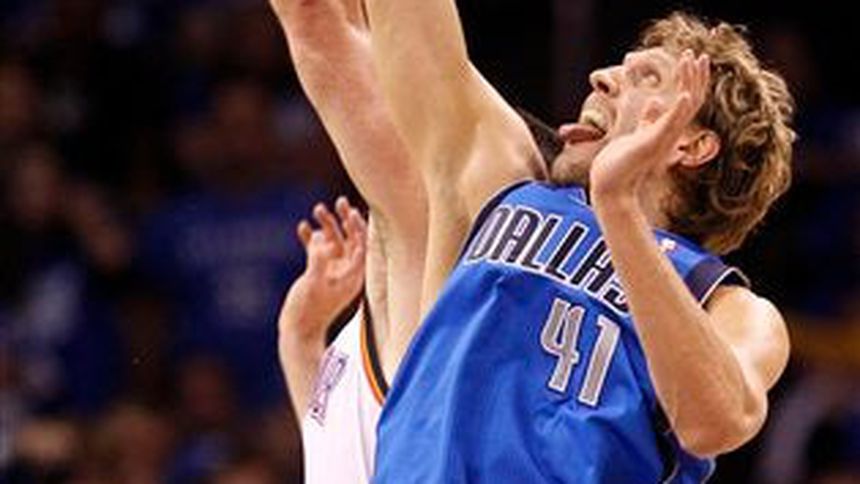 Nowitzki encestó 7 de sus 21 disparos pero aún así Dallas recurrió a él para resistir el último embate de Oklahoma City.