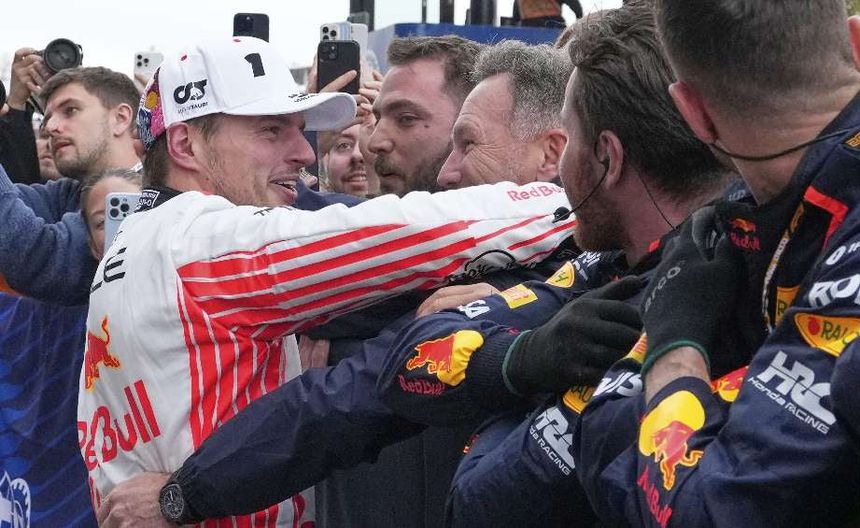 Verstappen festejó con su equipo luego de la victoria en Japón.