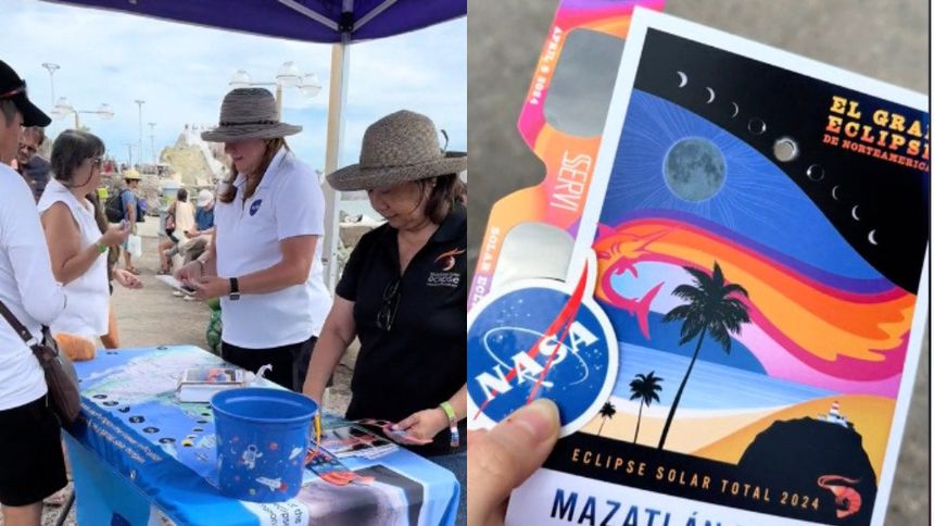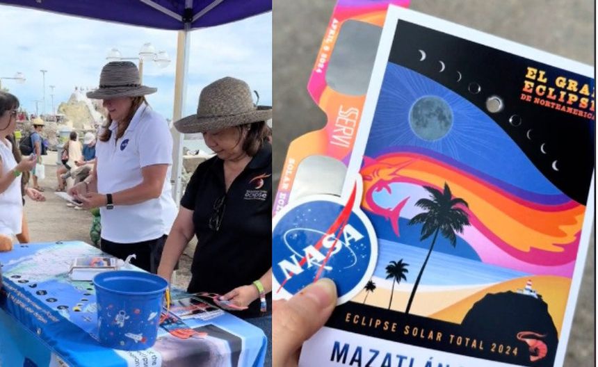 En Mazatlán ya están listos para recibir el eclipse total de sol este lunes 8 de abril 2024. Incluso, previo al fenómeno natural, tanto autoridades locales como especialistas de la NASA, distribuyeron en 10 puntos distintos a lo largo del malecón (de más de 7 kilómetros), y a partir de las cinco de la mañana de este lunes, 60 mil lentes especiales para observar el eclipse.