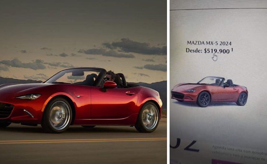 En redes sociales se ha hecho viral un video en el que un hombre está navegando por el sitio de Mazda México, mostrando los diferentes vehículos que están a la venta con costo de varios cientos de miles de pesos, sin embargo, al llegar a la sección del auto Mazda MX-5, modelo 2024, se encuentra con que su precio es de 519 mil 900 pesos.