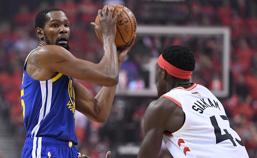 Los californianos ganaron el partido 106-105 en Toronto a pesar de que Durant se tuvo que retirar en el segundo cuarto por una lesión en el talón de Aquiles derecho. En los 12 minutos que estuvo en pista anotó 11 puntos y capturó dos rebotes.