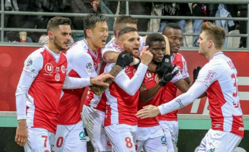 Jugadores del Stade de Reims durante un juego de la Ligue 1 | TWITTER @StadeDeReims