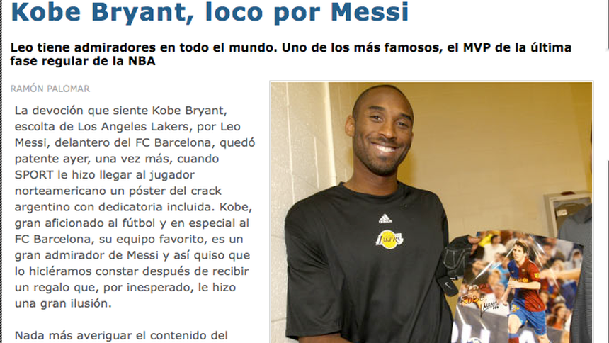 El escolta de los Lakers es un buen aficionado al futbol y el pasado fin de semana presenció junto a sus compañeros, en Londres, el Chelsea-Arsenal, de la Premier League, por lo que no ha tenido reparos en opinar sobre Messi, de quien ha dicho: "Es el mejor jugador del mundo, es mi muchacho".