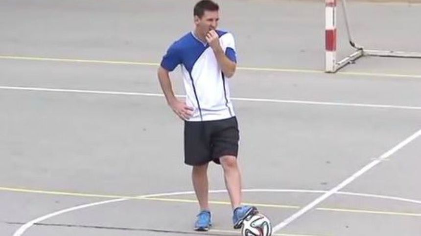 El astro argentino debía elevar el esférico, pasarlo por encima de una barra sostenida por una grúa, para después correr y controlarlo sin dejar que el balón tocara el suelo.