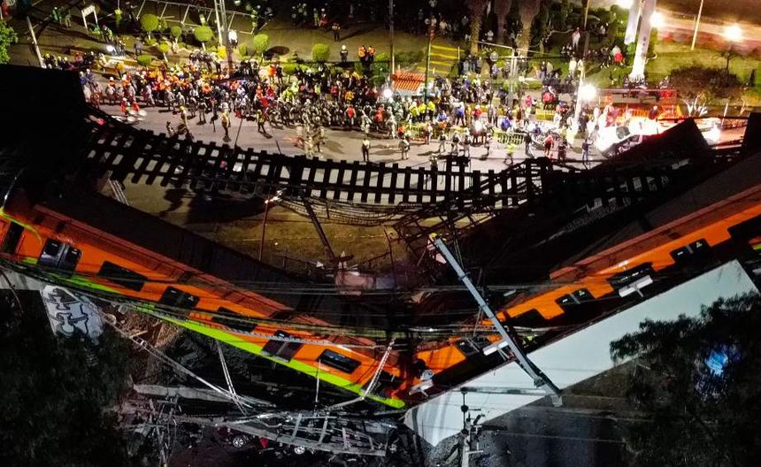 La tragedia ocurrió el 3 de mayo por la noche cuando cedió una viga de un puente elevado de la línea 12, entre la estaciones Olivos y Tezonco, en el sureste de la capital, provocando la caída de un tren con pasajeros que quedó encallado en forma de "V".