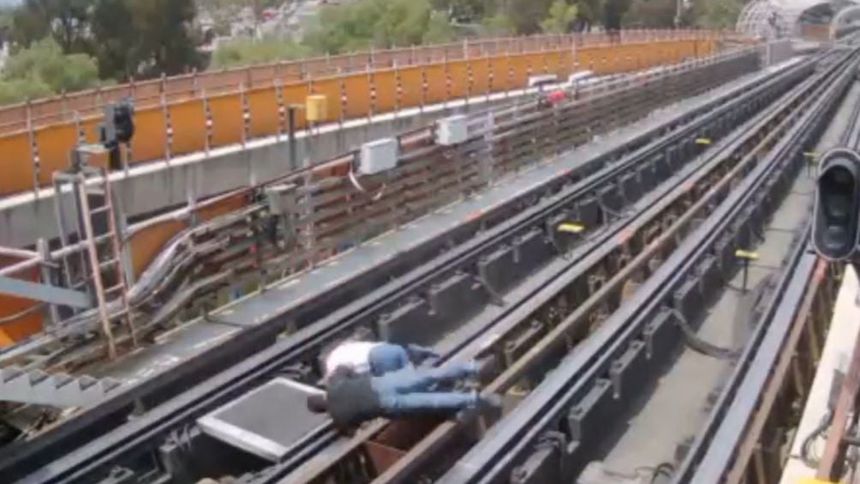 El periodista Carlos Jiménez compartió un video en su cuenta de redes sociales en donde se ve el momento en el que ambos trabajadores del STC Metro se encuentran atravesando sobre las vías.