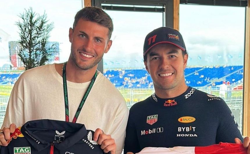 El delantero del Feyenoord asistió al Gran Premio de la Fórmula 1 y como parte de un evento de promoción de Red Bull, se juntó con su compatriota, Checo Pérez. En la foto se observa a Pérez con el jersey del Feyenoord con el dorsal y nombre de Santi, mientras que Giménez posó con la playera de la escudería austriaca.