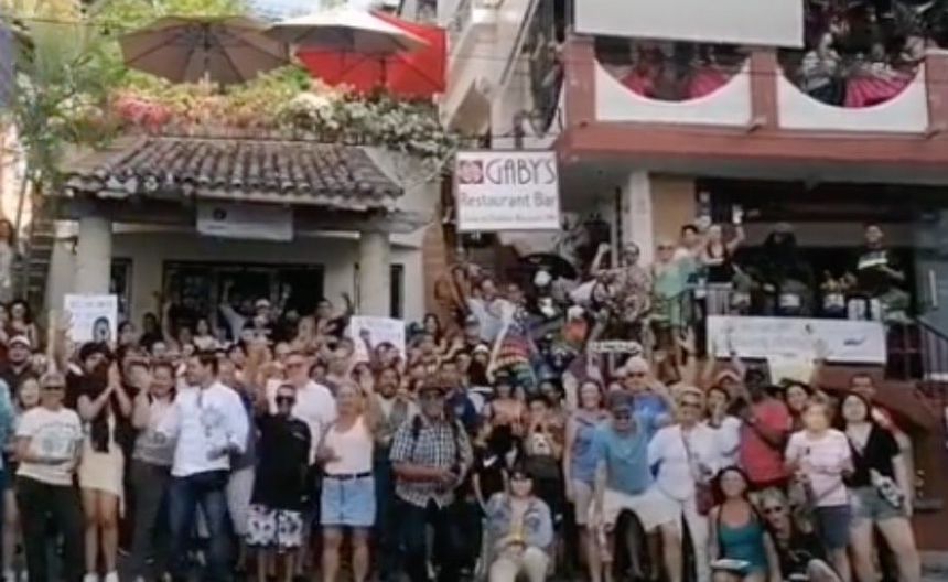 Después de que se hiciera viral que una pareja de estadounidenses pretende cerrar el restaurante Gaby's en Puerto Vallarta, ya que según ellos el ruido del lugar les perjudica su vida de retirados e incluso tienen demandado al dueño, al grito de “¡México, México”, decenas de mexicanos hicieron una manifestación para expresarle su apoyo al lugar.