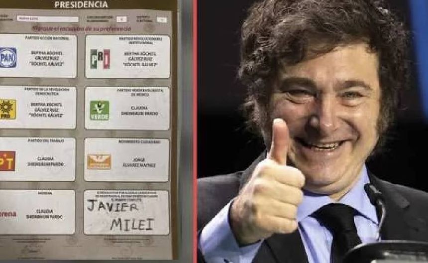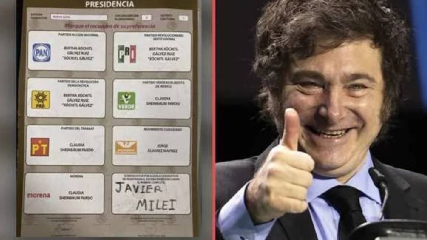 Durante las elecciones en México, una foto de una boleta electoral se ha vuelto viral en las redes sociales debido a que el presidente argentino, Javier Milei, fue votado como candidato. En la imagen se puede ver la boleta para elegir al próximo presidente de México, pero en el último recuadro, donde se puede votar por cualquier ciudadano mexicano sin partido, aparece el nombre de Milei.