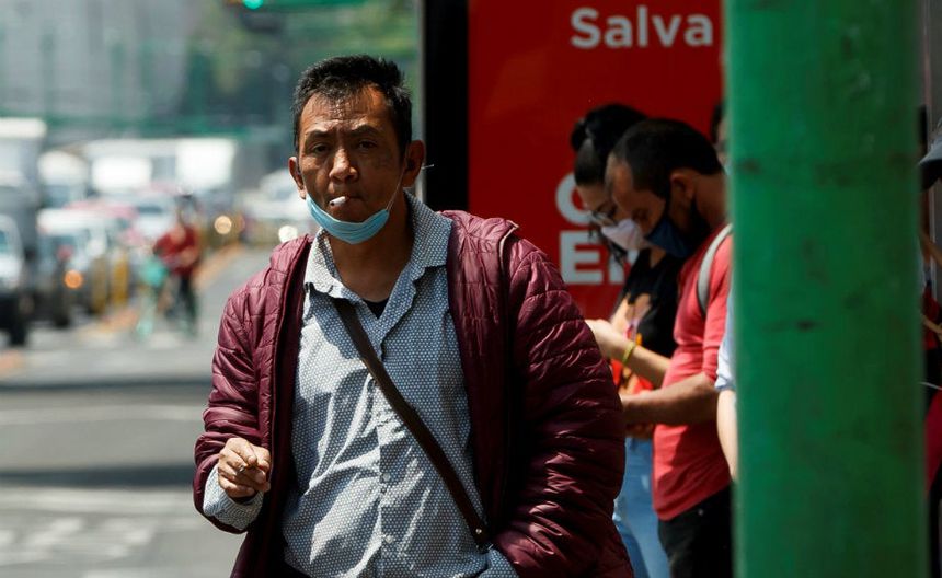 Habitante de la Ciudad de México con cubrebocas en parada de autobus | EFE