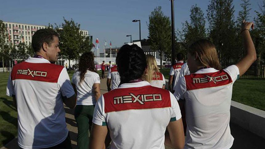 En la ceremonia de izado de la bandera mexicana en la villa de los atletas, los competidores se presentaron con chándal o con polo con los colores rojo, verde y blanco de la enseña nacional, pero con el nombre de México sin acento.